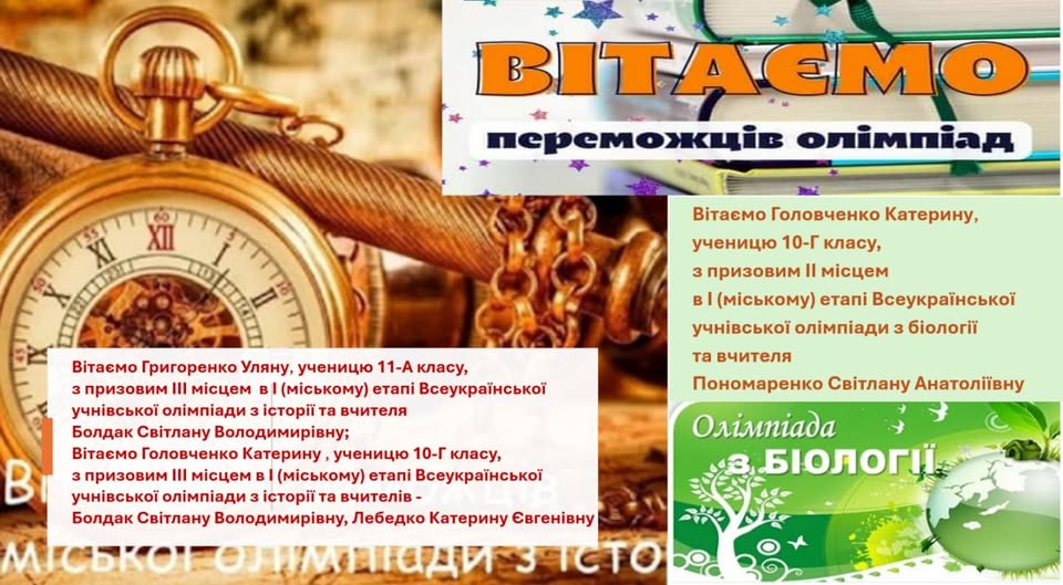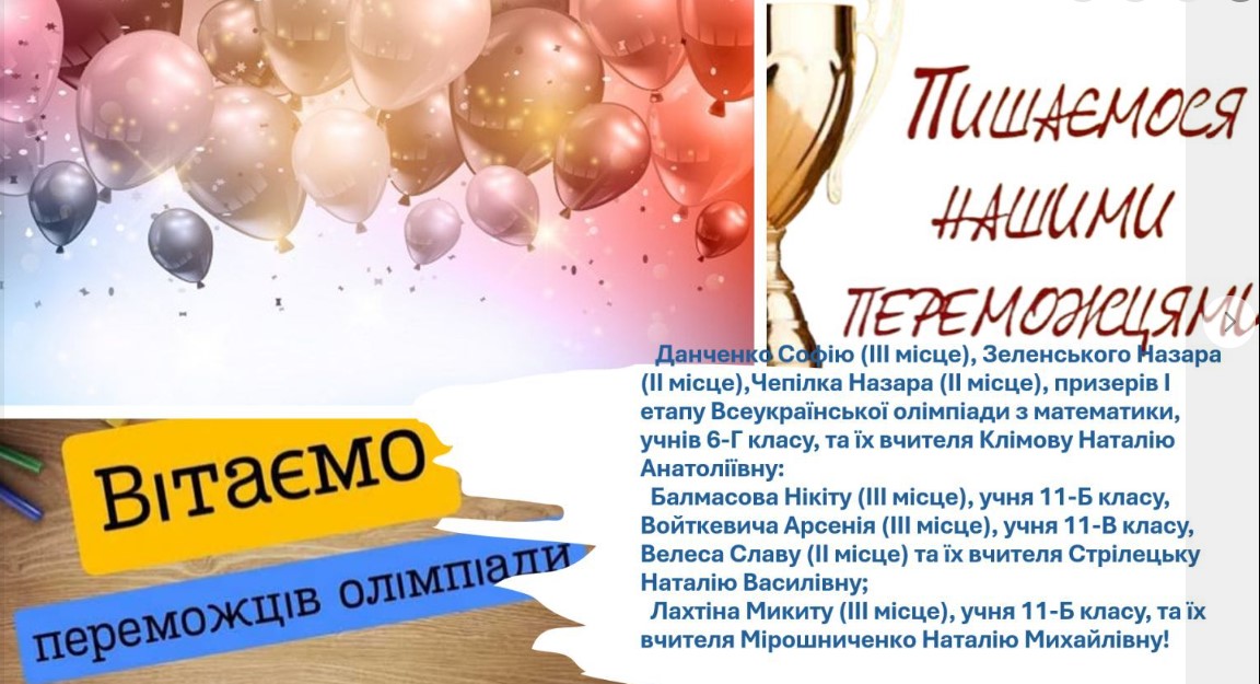 Вітаємо переможців олімпіад! Щирі вітання переможцям олімпіад та їх наставникам! Ваша перемога – це результат наполегливої праці, творчого пошуку й таланту.
