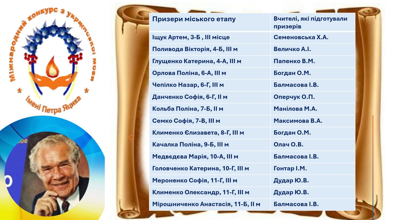 міського етапу ХХVІ Міжнародного конкурсу знавців української мови імені Петра Яцика від 12.12.25