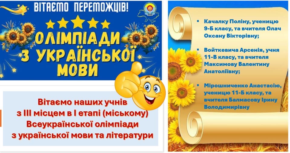 І етапу олімпіади з української мови та літератури від 18.11.25